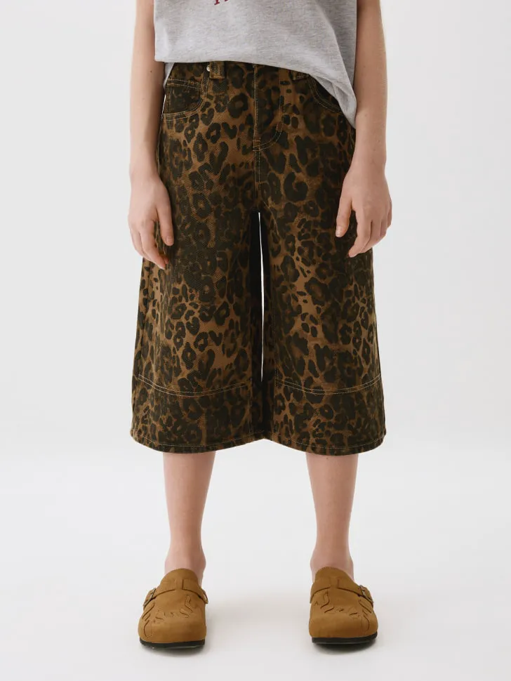 Изготовленные из прочного и мягкого денима, они идеально подходят для активных игр, прогулок и повседневного ношения. Удобный крой гарантирует отличную посадку, а свободный фасон не стесняет движений. Леопардовый принт легко сочетается с однотонными футболками и топами, позволяя создавать множество ярких и запоминающихся ансамблей. Подарите вашей дочке возможность выразить свою индивидуальность с этими модными шортами, которые подчеркнут ее стиль и энергию!