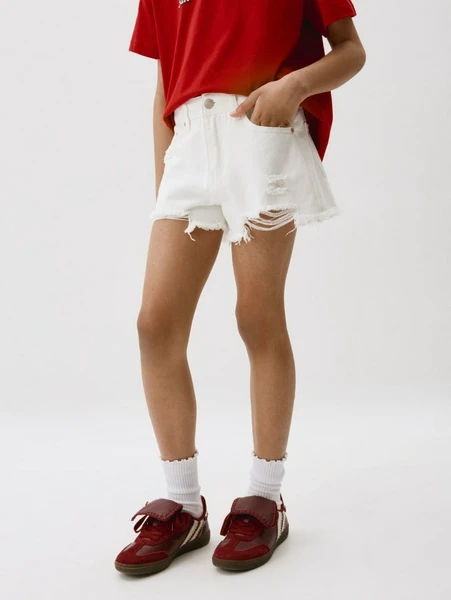 Рваные джинсовые шорты SELA для девочек, белый, арт. 38771