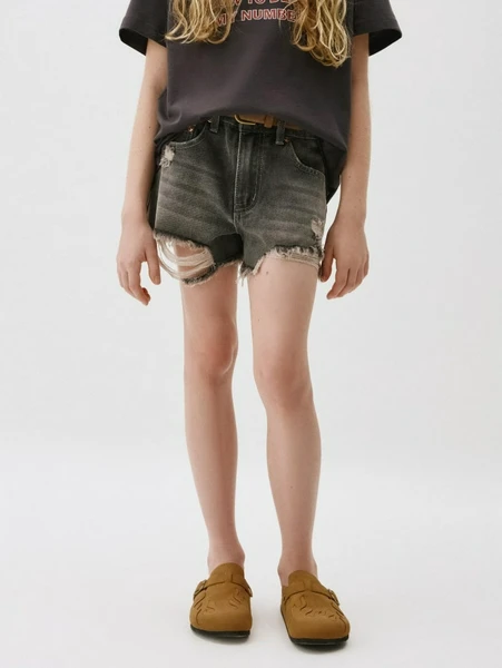 Рваные джинсовые шорты SELA для девочек, серый, арт. 35242