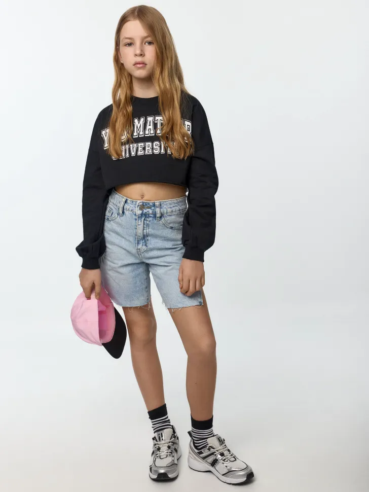 Представляем удлиненные джинсовые шорты, разработанные специально для активных и стильных девочек. Эта модель сочетает в себе модный дизайн и максимальный комфорт, что делает её идеальным выбором для летнего сезона и теплой погоды. Изготовленные из высококачественного денима, шорты отличаются прочностью и долговечностью, выдерживая все испытания энергичного детского дня.