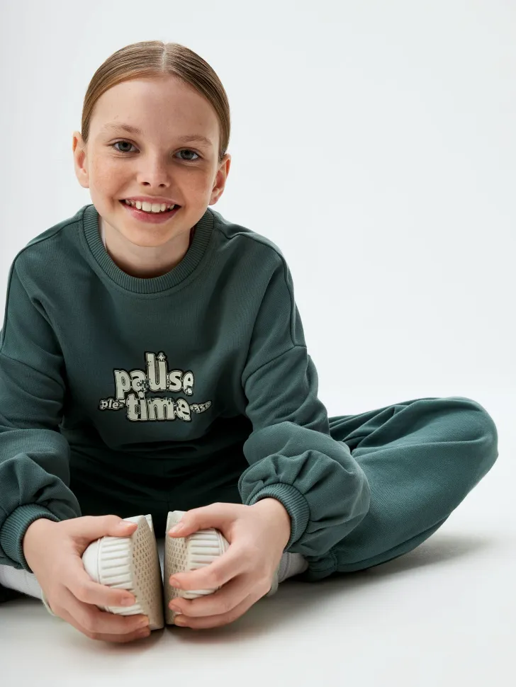 Свитшот с принтом, темно-зеленый, арт. Нет