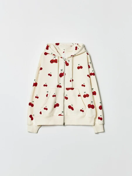 Эта модель сочетает в себе свободный крой и яркий акцент в виде оригинального принта с вишнями 🍒. Толстовка выполнена из качественного материала (предположительно хлопка), который обеспечивает мягкость и приятные тактильные ощущения. Она отлично подходит для активных игр, школьных будней или неформальных встреч с друзьями.
