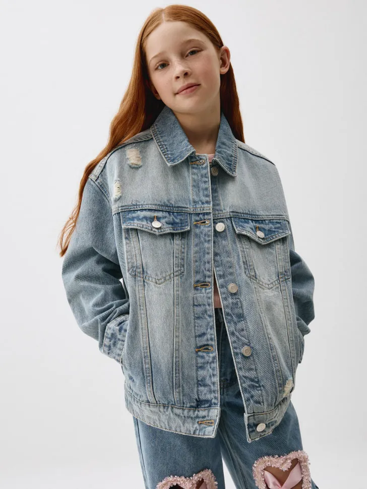 Особое внимание привлекает оригинальный принт на спине, который делает каждую куртку по-настоящему уникальной и позволяет выразить собственный стиль. Классический крой и универсальный светло-голубой оттенок денима позволяют легко комбинировать куртку с разнообразной одеждой – от легких летних платьев до повседневных джинсов. Добавьте в образ нотку бунтарства и свежести! Эта джинсовая куртка станет любимой вещью в гардеробе вашей девочки, обеспечивая тепло, защиту и уверенность в себе в любой ситуации. Она создана для того, чтобы подчеркнуть яркую индивидуальность и вдохновить на новые стильные эксперименты.