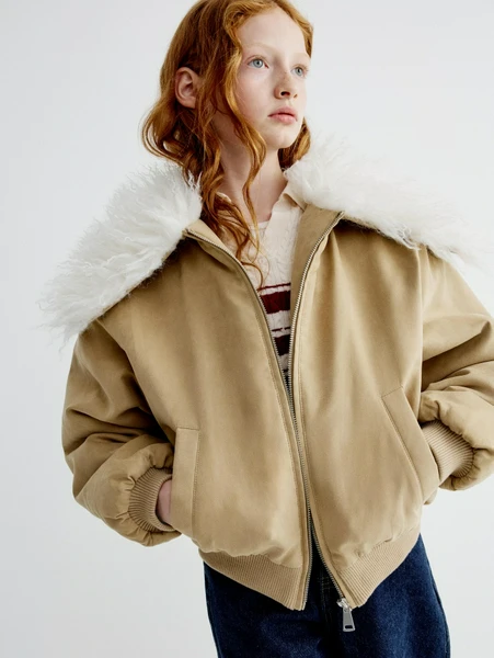 Бомбер SELA из искусственной замши для девочек, бежевый, арт. 36605