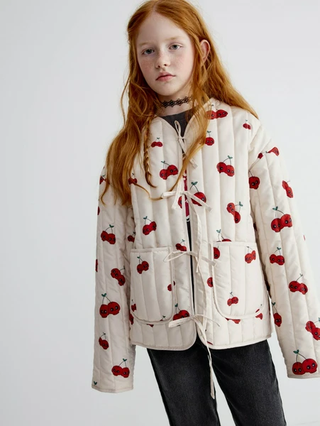 Представляем легкую стеганую куртку SELA – идеальное решение для стильной и активной девочки! Эта очаровательная модель выполнена в молочном цвете с ярким и игривым вишневым принтом, который подарит солнечное настроение даже в пасмурную погоду. Куртка разработана с учетом всех потребностей юных модниц, сочетая в себе комфорт, практичность и актуальный дизайн.