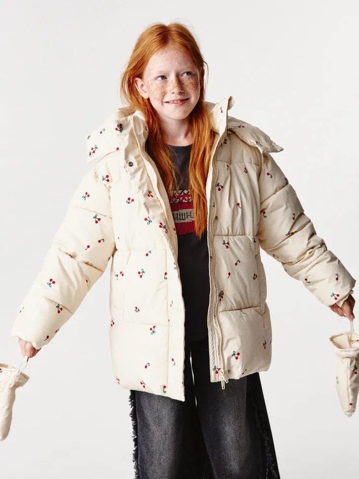 Милый вишневый принт на молочном фоне придает куртке особый шарм и делает её по-настоящему уникальной. Продуманный крой не стесняет движений, позволяя девочке свободно бегать, прыгать и наслаждаться зимними играми. Удобный капюшон защитит от снега и ветра, а качественная фурнитура обеспечит долговечность изделия. Эта куртка станет незаменимым элементом гардероба вашей дочки в холодное время года, подарив ей уверенность в себе и радость от каждой прогулки.