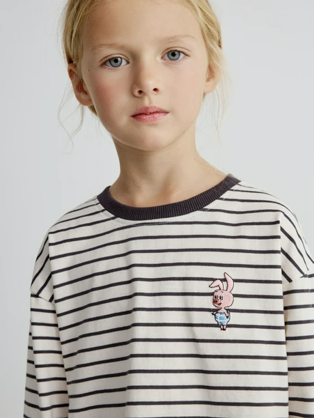 Модель выполнена из высококачественного и приятного к телу материала, обеспечивающего максимальный комфорт в течение всего дня. Стильный полосатый дизайн дополнен очаровательной вышивкой, которая придает изделию особую индивидуальность и игривость. Лонгслив идеально подходит для школы, прогулок и встреч с друзьями.