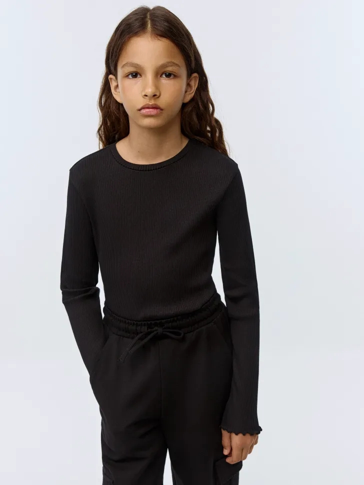Представляем идеальный трикотажный лонгслив в рубчик для вашей юной модницы! Эта универсальная и невероятно удобная модель станет незаменимой частью гардероба. Изготовленный из мягкого и приятного к телу трикотажа в мелкий рубчик, он обеспечивает максимальный комфорт в течение всего дня. Эластичный материал прекрасно сидит по фигуре, не стесняя движений, что особенно важно для активных девочек. Лонгслив отлично подходит как для повседневной носки в школу или на прогулку, так и для создания более нарядных образов в сочетании с юбками или стильными брюками. Его легко комбинировать с жилетками, кардиганами или поддевать под толстовки для дополнительного тепла в прохладную погоду.