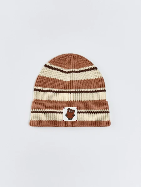 ШапкиОткройте мир сказочных приключений вместе с детской шапкой-бини SELA x Союзмультфильм! Эта уютная и стильная шапка создана специально для маленьких поклонников культовых советских мультфильмов. Выразительный дизайн с нашивкой любимого персонажа – Винни-Пуха – моментально привлечет внимание и добавит нотку озорства в повседневный образ вашего ребенка.
