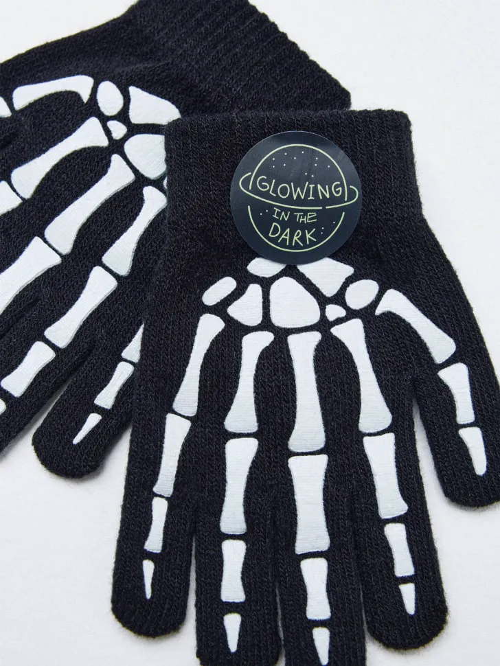 Перчатки со светящимся в темноте принтом Halloween детские, арт. 3733