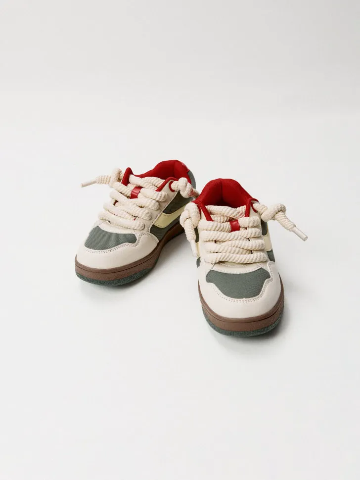 Комбинированные кеды с толстыми шнурками, бежевый, хаки, арт. kedy001