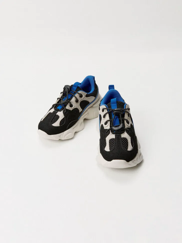 Комбинированные кроссовки, черный, синий, бежевый, арт. krosnk001