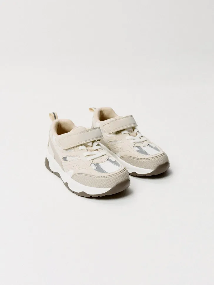 Кроссовки на липучке для мальчиков, бежевый, белый, арт. 15491