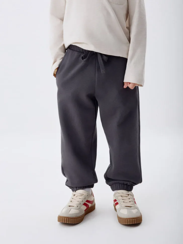 Представляем идеальные базовые джоггеры для вашего мальчика! 👖 Эти джоггеры – незаменимая вещь в гардеробе, ведь они сочетают в себе максимальный комфорт и универсальный стиль. Изготовленные из мягкого, дышащего материала, они обеспечат свободу движений во время активных игр на улице и уют в домашней обстановке. Эластичный пояс со шнурком гарантирует идеальную посадку, а манжеты на штанинах добавляют современный вид.