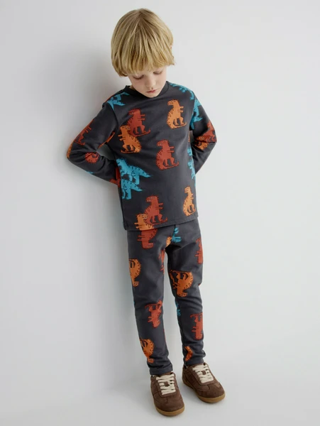 Изготовленные из высококачественного трикотажа с мягким начесом, они приятны к телу и дарят ощущение защищенности в любую погоду. Уникальный принт с динозаврами превратит каждый день в увлекательное приключение, стимулируя воображение и добавляя ярких красок в гардероб. Эластичный пояс гарантирует идеальную посадку, а удобный крой не сковывает движений. Идеально подходят для: