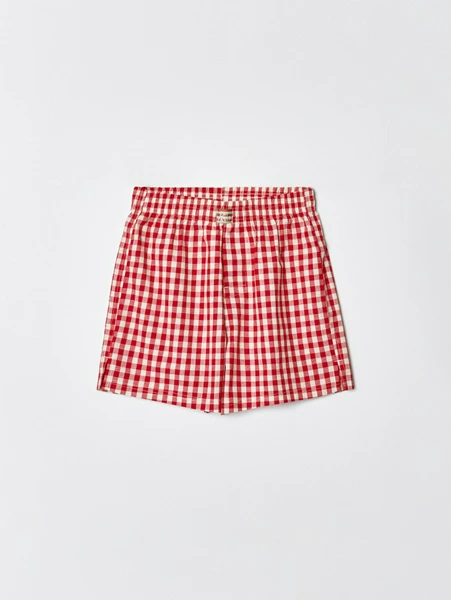 Откройте для вашего ребёнка мир комфорта и стиля с домашними шортами Sela! Этот очаровательный набор, выполненный в трендовую красно-белую клетку, идеально подойдёт для любых домашних приключений – от утренних игр до спокойного сна.