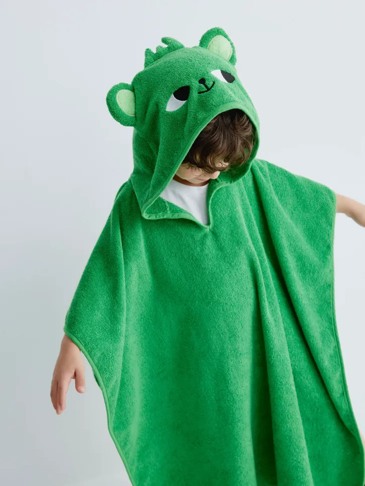 Представляем детское полотенце-пончо с капюшоном Вигге — идеальное решение для вашего малыша после веселых водных процедур! Забудьте о долгих уговорах после купания: с этим забавным полотенцем, похожим на милого зеленого динозаврика или дракончика, каждый выход из ванны, бассейна или моря превратится в увлекательный приключенческий квест.