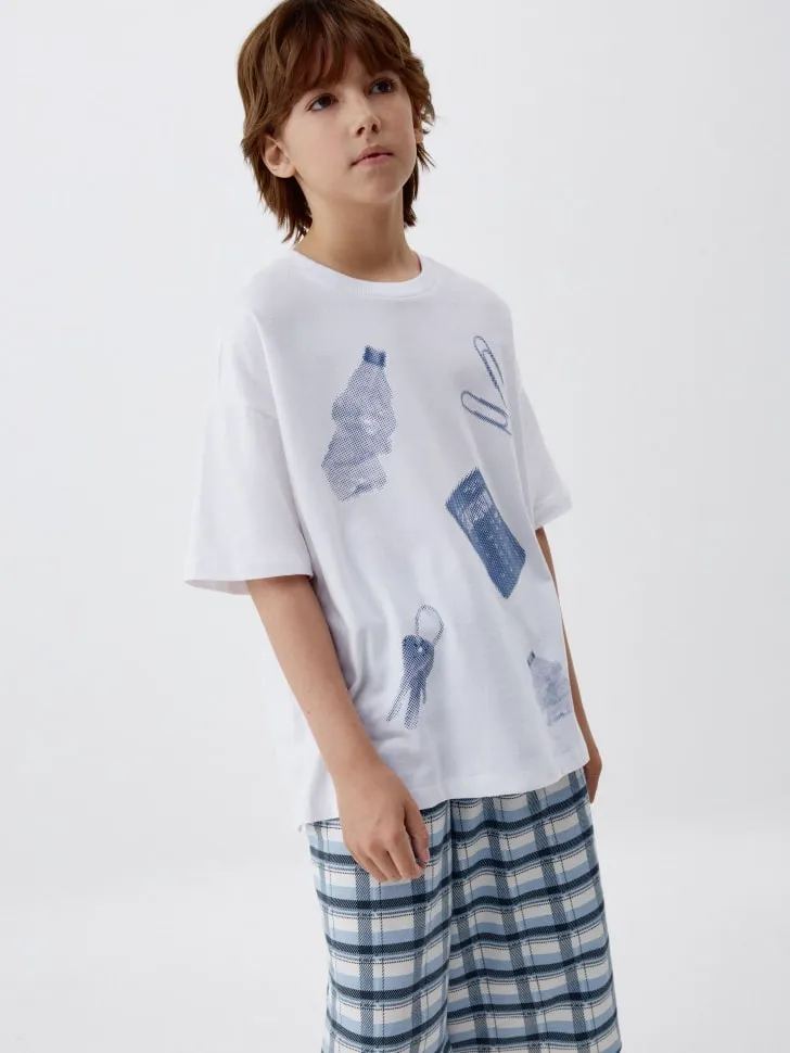 Особое внимание уделено дизайну: яркий и запоминающийся принт обязательно понравится юным модникам и добавит позитивного настроения. Эта пижама не только красива, но и чрезвычайно практична: она легко переносит частые стирки, сохраняя свою первоначальную форму, яркость цветов и мягкость ткани. Инвестируйте в качественный сон и отличное настроение вашего мальчика с нашей пижамой с принтом – это идеальный выбор для заботливых родителей, ценящих комфорт и долговечность детской одежды.