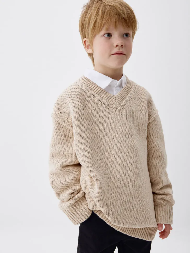 Представляем идеальное решение для стильных и активных мальчиков – наш вязаный джемпер оверсайз! Эта модель создана с учетом всех потребностей современного ребенка: она обеспечивает максимальный комфорт и полную свободу движений, что делает ее незаменимой как для повседневной носки, так и для прогулок или занятий. Свободный крой оверсайз не только в тренде, но и гарантирует, что джемпер подойдет для разных типов фигур и будет удобен в течение всего дня.