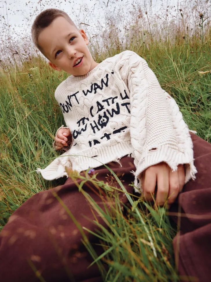 Представляем вязаный джемпер в стиле гранж для мальчиков — воплощение современного стиля и исключительного комфорта. Этот джемпер разработан для юных модников, которые ценят свободу самовыражения и не боятся экспериментировать со своим образом. Изготовленный из высококачественной, приятной на ощупь пряжи, он идеально подходит для осенне-зимнего сезона, обеспечивая тепло без утяжеления. Мы позаботились о том, чтобы материал был не только теплым, но и "дышащим", а также устойчивым к повседневному износу.