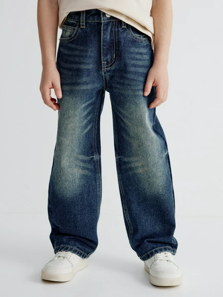 Модель Baggy отличается свободным кроем, который не сковывает и позволяет чувствовать себя комфортно как на школьных занятиях, так и во время игр на улице. Темно-синий деним с легкими, естественными потертостями придает джинсам современный и дерзкий вид, легко вписываясь в любой гардероб.