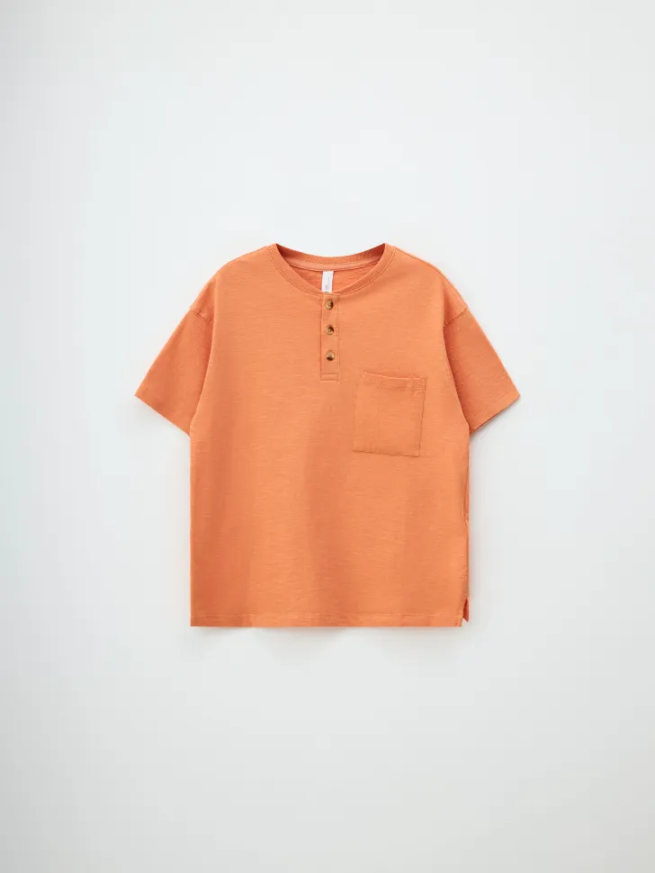 Базовая футболка на пуговицах, оранжевый, арт. Не указан