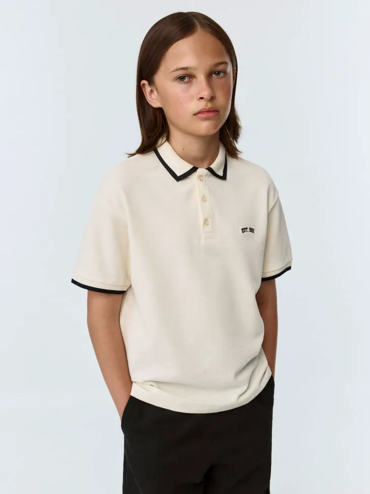 Представляем идеальное детское поло с короткими рукавами, созданное для комфорта и стиля вашего мальчика. Эта универсальная модель станет незаменимой частью гардероба, подходящей как для повседневной носки, так и для официальных мероприятий или школьных будней. Поло выполнено в благородном молочном цвете, который гармонично дополняется контрастными черными элементами на воротнике и манжетах рукавов, придавая изделию завершенный и аккуратный вид.