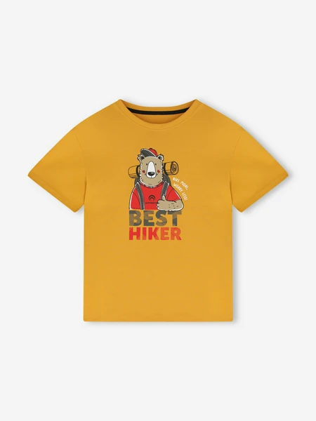 Футболки и топыПредставляем футболку Outventure для мальчиков — идеальный выбор для активного отдыха и повседневной носки! Эта модель желтого цвета с ярким принтом в виде медведя-путешественника обязательно понравится вашему ребенку. Надпись "BEST HIKER" вдохновит на новые приключения и открытия.