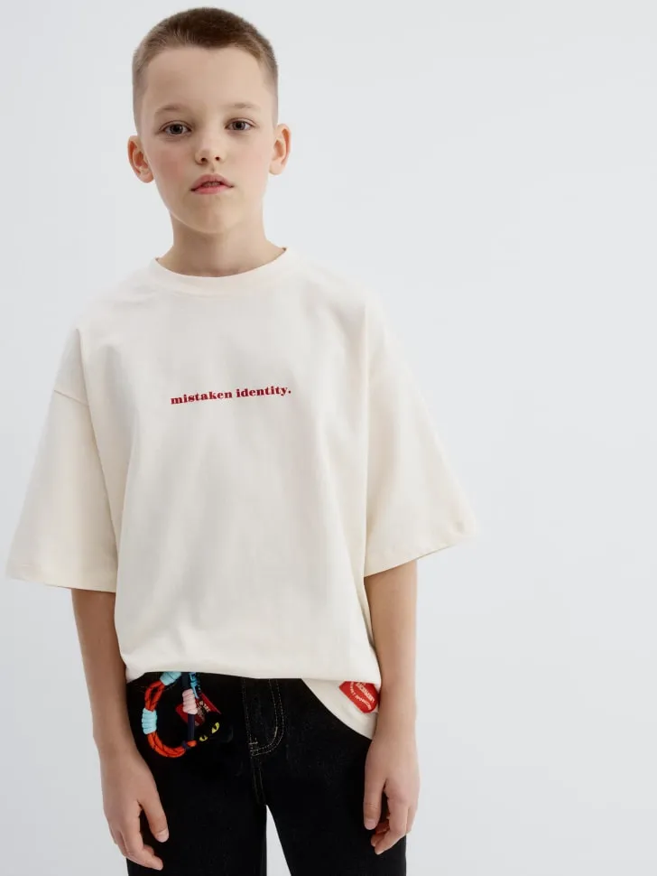 Дизайн футболки вдохновлен культовыми образами легендарной киностудии Мосфильм, что придает ей особую изюминку и делает по-настоящему особенной. Красная надпись "mistaken identity." на нежном светло-бежевом фоне выглядит очень стильно и современно, добавляя образу нотку загадочности. Эта футболка станет ярким акцентом в гардеробе юного модника, позволит ему выразить свою индивидуальность и подчеркнуть хороший вкус. Она прекрасно сочетается с джинсами, шортами, спортивными брюками или даже классическими брюками для создания уникального кэжуал-образа. Подарите вашему мальчику не только невероятный комфорт, но и возможность прикоснуться к легендарному миру кино с коллекцией SELA x Мосфильм! 🌟 Не упустите шанс приобрести эту эксклюзивную вещь, которая станет любимой в гардеробе вашего сына!