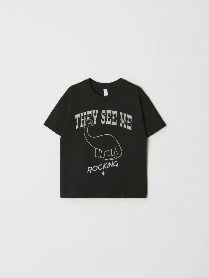 Футболка выполнена в классическом черном цвете и украшена ярким и запоминающимся принтом динозавра с надписью "They See Me Rocking". Это не просто одежда, а способ выразить свою индивидуальность, подчеркнуть характер и показать свой уникальный стиль. Изготовленная из высококачественного материала, она приятна к телу, износостойка и легка в уходе. Идеально подходит для повседневной носки, активного отдыха, прогулок или встреч с друзьями. Легко сочетается с любыми джинсами, шортами или спортивными брюками, создавая множество модных и комфортных образов. Подарите своему мальчику возможность быть в тренде и чувствовать себя на высоте в любой день!