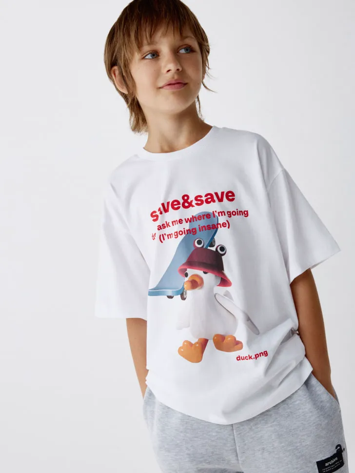 Футболка оверсайз с принтом детская, белый, арт. 4755