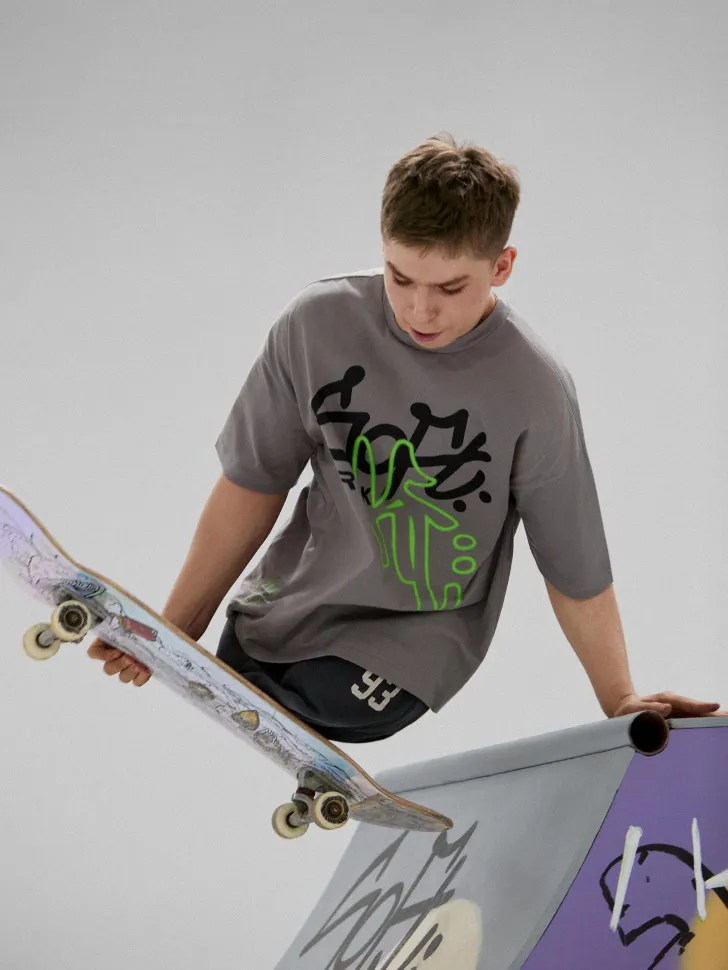 Представляем нашу новую футболку оверсайз с ярким и запоминающимся принтом – идеальный выбор для современных и активных мальчиков! 👕 Эта модель безупречно сочетает в себе максимальный комфорт и самые актуальные модные тенденции, позволяя вашему ребенку чувствовать себя уверенно и абсолютно свободно в любой ситуации. Свободный крой оверсайз не только не сковывает движений, но и создает стильный, расслабленный силуэт, а мягкая, приятная к телу и дышащая ткань обеспечивает комфортные ощущения в течение всего дня, предотвращая дискомфорт. Ваш юный модник непременно оценит уникальный и тщательно проработанный принт, который добавит изюминку и индивидуальность в его повседневный образ, помогая выделиться среди сверстников.