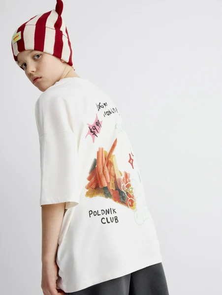 Футболка оверсайз SELA с принтом для мальчиков, белый, арт. 35128