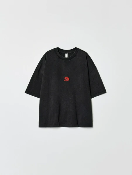 Особое внимание привлекает оригинальный принт – стилизованный красный череп, который добавляет футболке дерзкий и современный вид. Свободный крой оверсайз обеспечивает полную свободу движений, что делает эту футболку идеальным выбором для игр, прогулок и повседневной носки. Потертый черный цвет легко сочетается с различными элементами гардероба, от спортивных шорт до джинсов. Sela заботится о том, чтобы одежда была не только красивой, но и практичной, легко переносила частые стирки и долго сохраняла первоначальный вид. Эта футболка – прекрасное сочетание качества, стиля и удобства для мальчиков, которые ценят индивидуальность.