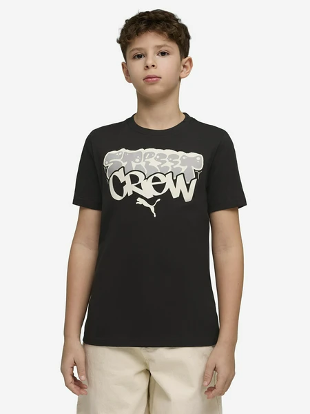 Дизайн футболки PUMA Mid90 S подчеркивает индивидуальность: эффектный принт 'STREET CREW' добавляет современный и дерзкий акцент. Прямой покрой гарантирует свободу движений, что особенно важно для игр и занятий спортом. Это идеальный выбор для летнего сезона, прогулок, тренировок или просто повседневного ношения. Откройте для вашего мальчика мир стиля и удобства с PUMA!