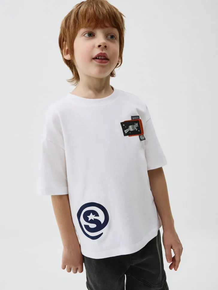 Футболки и топыОткройте для своего мальчика мир непревзойденного комфорта и безупречного стиля с нашей новой футболкой! Эта модель с оригинальным патчем станет не просто одной из вещей, а любимым элементом в его гардеробе. Мы тщательно подобрали материалы, чтобы обеспечить максимальное удобство: ткань исключительно мягкая, приятная к телу и позволяет коже свободно дышать, что идеально подходит для самых активных игр, школьных занятий и повседневного ношения. Благодаря высококачественному составу, футболка сохраняет свою форму и насыщенность цвета даже после многочисленных стирок.