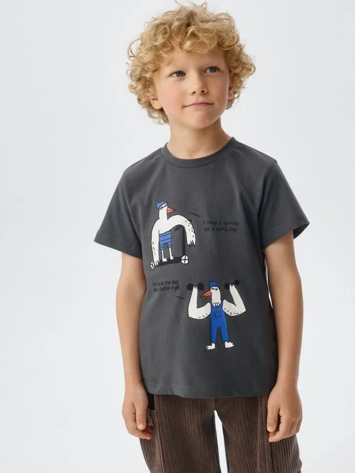 Представляем вашему вниманию стильную и комфортную футболку с ярким и оригинальным принтом, разработанную специально для мальчиков! 🚀 Эта футболка станет незаменимой вещью в гардеробе каждого юного модника и спортсмена. Она идеально подходит для активных игр на свежем воздухе, веселых прогулок с друзьями, занятий спортом или просто для комфортного времяпровождения дома. Мы используем только высококачественные материалы, которые обеспечивают максимальный комфорт в носке, отличную воздухопроницаемость и долговечность изделия. А оригинальный принт, несомненно, добавит индивидуальности и выразительности любому повседневному образу. Ваш ребёнок будет чувствовать себя уверенно, удобно и стильно в течение всего дня! ☀️