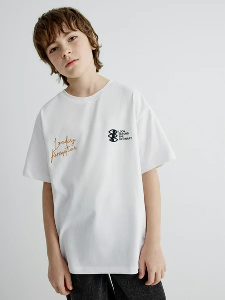 Футболка SELA оверсайз с принтом для мальчиков, белый, арт. 35136