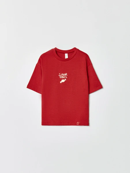 Представляем стильную футболку оверсайз для мальчиков от Sela — идеальный выбор для современного и активного ребенка! Эта яркая красная футболка с уникальным принтом "Sugar Vibes" не только подчеркнет индивидуальность вашего сына, но и обеспечит ему максимальный комфорт в течение всего дня. Выполненная из высококачественного, дышащего материала, она приятна к телу и идеально подходит для повседневной носки.
