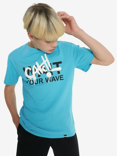 Благодаря использованию натурального материала, футболка обеспечивает исключительную мягкость и дышащие свойства, что критически важно в теплую погоду. Прямой покрой и классический круглый вырез горловины гарантируют полную свободу движений и комфортную посадку для любого подростка. Стильный принт "CATCH YOUR WAVE" добавляет изделию динамичности и молодежного шарма.