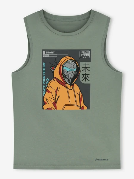 Представляем майку Demix для мальчиков – идеальное решение для активных и стильных ребят! Эта футболка без рукавов, выполненная в насыщенном зеленом цвете, украшена ярким и современным принтом с роботом, который обязательно понравится юным любителям приключений. Майка станет незаменимой частью гардероба как для повседневного использования, так и для занятий спортом.