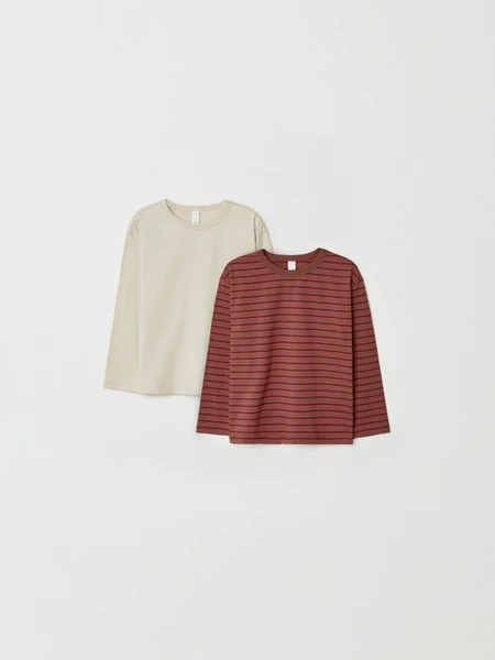 КомплектыПредставляем эксклюзивный набор детских лонгсливов от SELA – идеальное решение для стильного и комфортного гардероба вашего мальчика! Этот комплект из двух вещей создан с любовью и заботой о детях, сочетая в себе модный дизайн и практичность. В наборе вы найдете универсальный бежевый лонгслив, который легко впишется в любой повседневный образ, и эффектный терракотовый лонгслив в стильную полоску, который станет ярким акцентом.