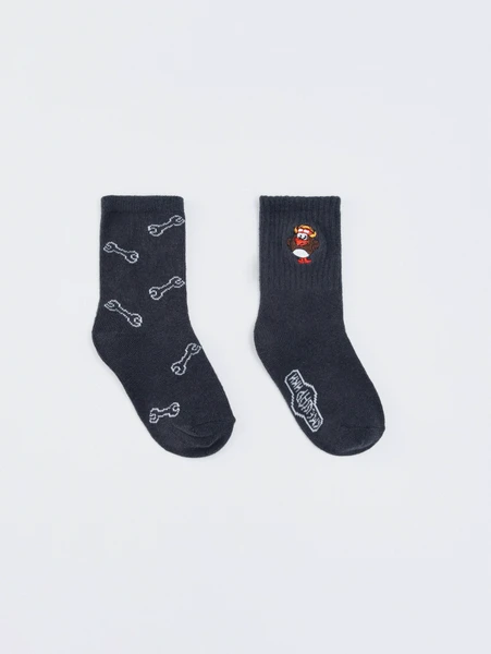 Первая пара украшена стильным и оригинальным принтом в виде гаечных ключей, что придаст образу юного мастера особую изюминку. Вторая пара порадует вашего ребенка любимым персонажем из мультсериала «Смешарики» — Кар-Карычем, выполненным в виде аккуратной и прочной вышивки. Темно-серый цвет делает их практичными и легко сочетаемыми с любой одеждой.