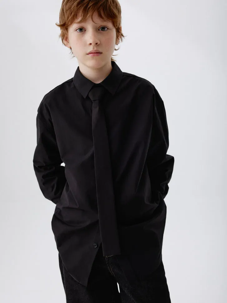 Рубашка из поплина с галстуком, черный, арт. art00123