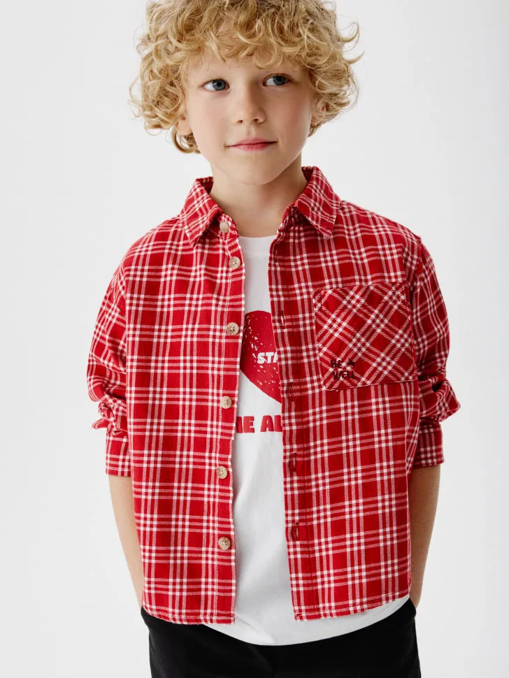 Классический красно-белый клетчатый принт выглядит ярко и модно, легко сочетаясь с джинсами, брюками или шортами. Рубашку можно носить расстегнутой поверх базовой футболки для создания непринужденного образа или застегнутой на все пуговицы для более строгого стиля. Качественная фурнитура и продуманный крой обеспечивают удобство движений и долговечность изделия. Эта рубашка – отличный выбор для школы, встреч с друзьями или семейных мероприятий, гарантируя, что ваш мальчик всегда будет выглядеть опрятно и стильно.
