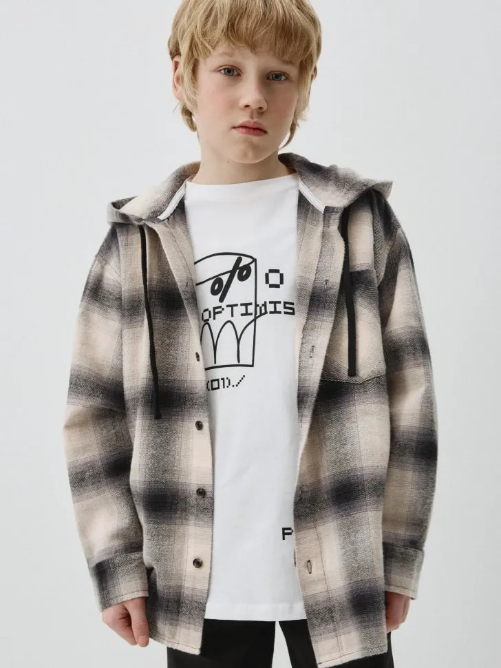 Представляем вашему вниманию стильную и практичную рубашку с капюшоном, разработанную специально для мальчиков! Этот элемент гардероба станет идеальным решением для повседневного образа, обеспечивая комфорт и свободу движений на протяжении всего дня. Модель сочетает в себе классический крой рубашки и удобство спортивного стиля благодаря наличию капюшона, который не только защитит от непогоды, но и придаст образу современный и динамичный акцент.