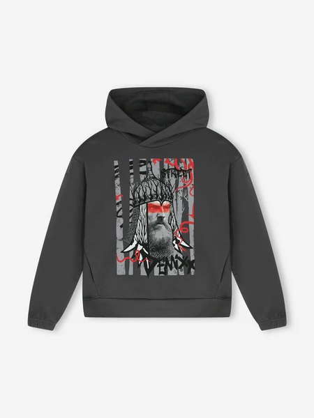 Эта модель серого цвета выполнена из натурального материала, что гарантирует мягкость и долговечность изделия. Худи оснащено удобным капюшоном и имеет свободный крой, который не сковывает движений, обеспечивая максимальный комфорт. Оригинальный рисунок на груди придает изделию индивидуальность и современный вид.