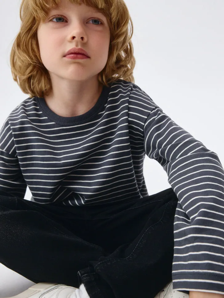Водолазки и лонгсливыПредставляем идеальный детский базовый лонгслив в полоску — незаменимую вещь в гардеробе вашего ребенка! Эта модель сочетает в себе стиль, комфорт и невероятную практичность, делая ее идеальным выбором для повседневной носки. Изготовленный из высококачественного, мягкого и дышащего материала, лонгслив обеспечивает максимальный уют и свободу движений на протяжении всего дня, будь то активные игры на площадке или спокойные занятия дома.