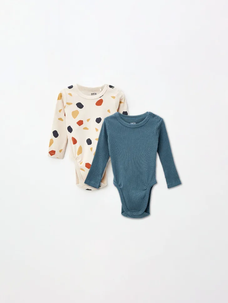 Представляем эксклюзивный набор комбинезонов для малышей, созданный с заботой о самых маленьких! Этот комплект из двух боди с длинным рукавом станет незаменимой частью гардероба вашего ребенка, обеспечивая комфорт и стиль на каждый день.