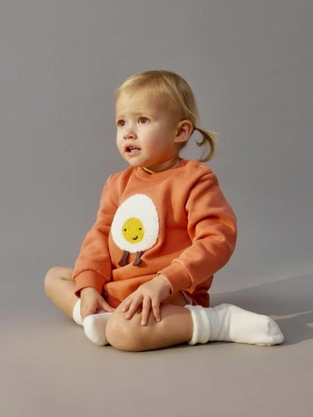 Боди и ползункиПредставляем очаровательный свитшот-боди Sela – идеальное сочетание комфорта, стиля и практичности для самых маленьких. Этот яркий оранжевый свитшот-боди станет настоящим хитом в гардеробе вашего малыша благодаря своей уникальной детали: милой и забавной вышивке в виде яичницы. Такое игривое оформление непременно вызовет улыбку!